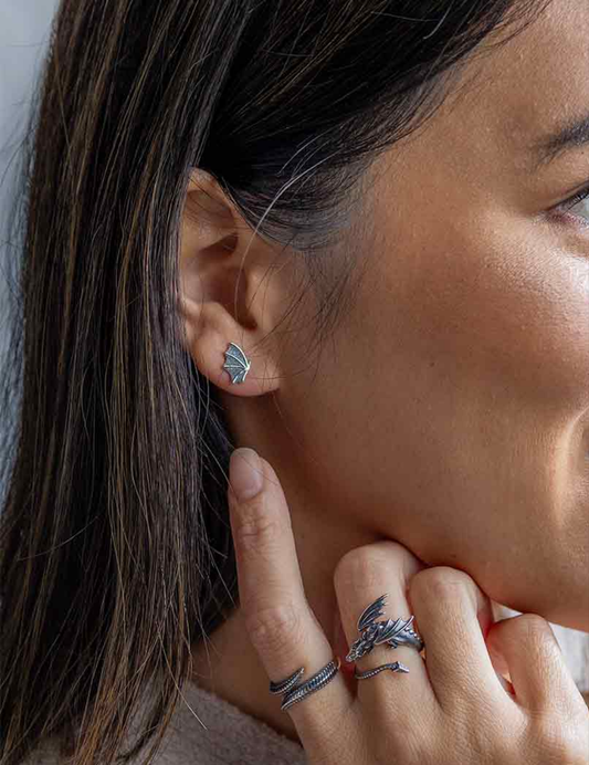 Sterling Silver Dragon Wing Post Earrings 10x8mm