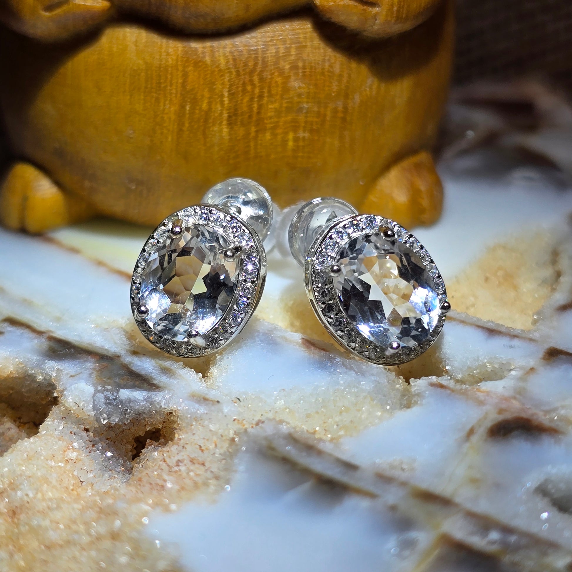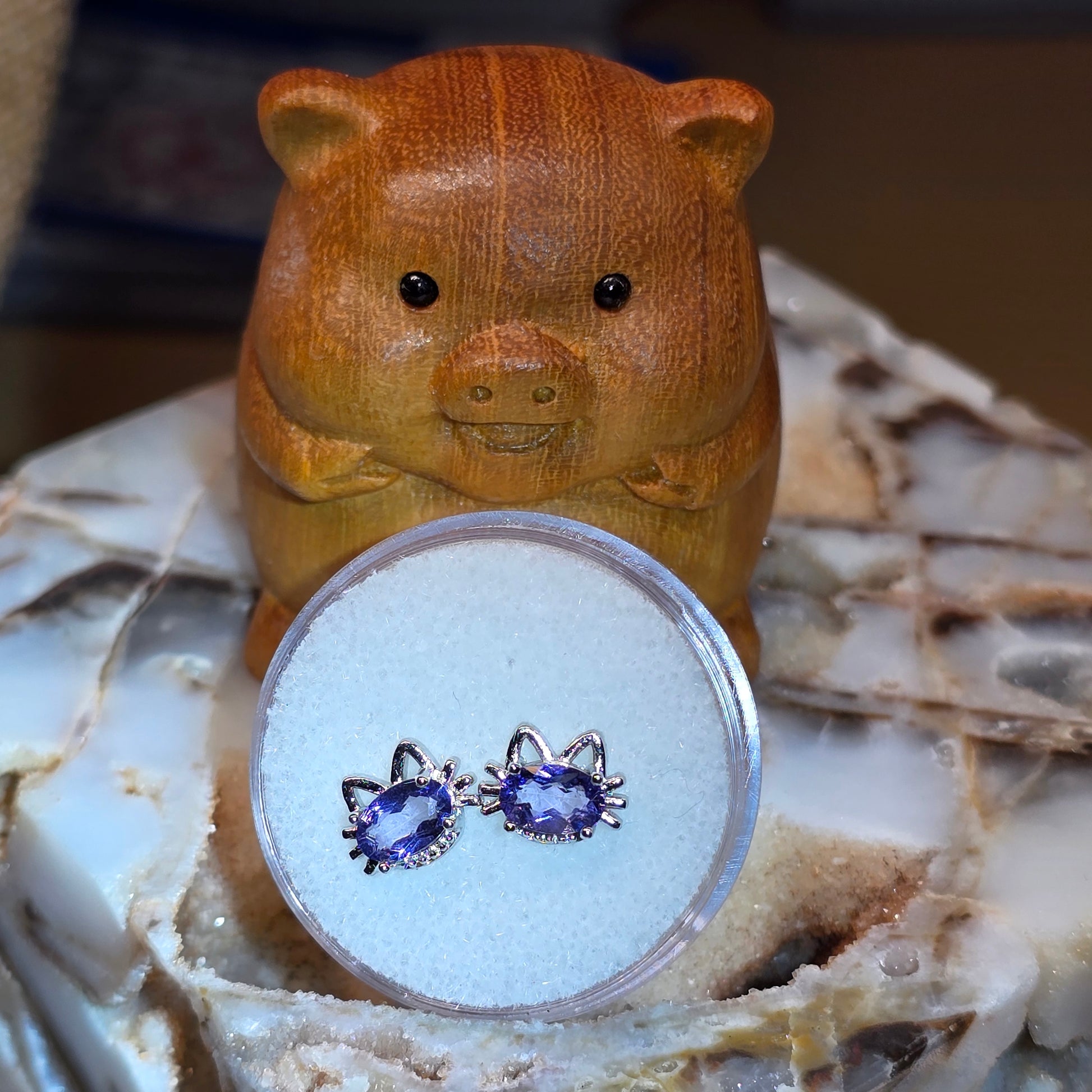 Iolite Kitty Ear Studs 7, Clear Quartz Studs 18