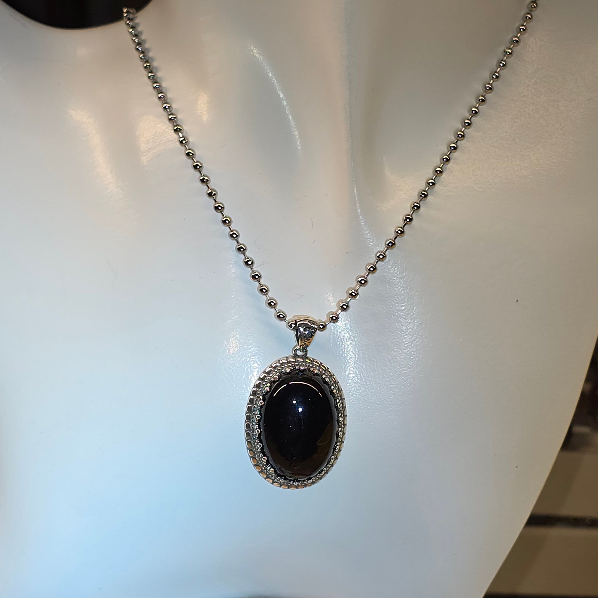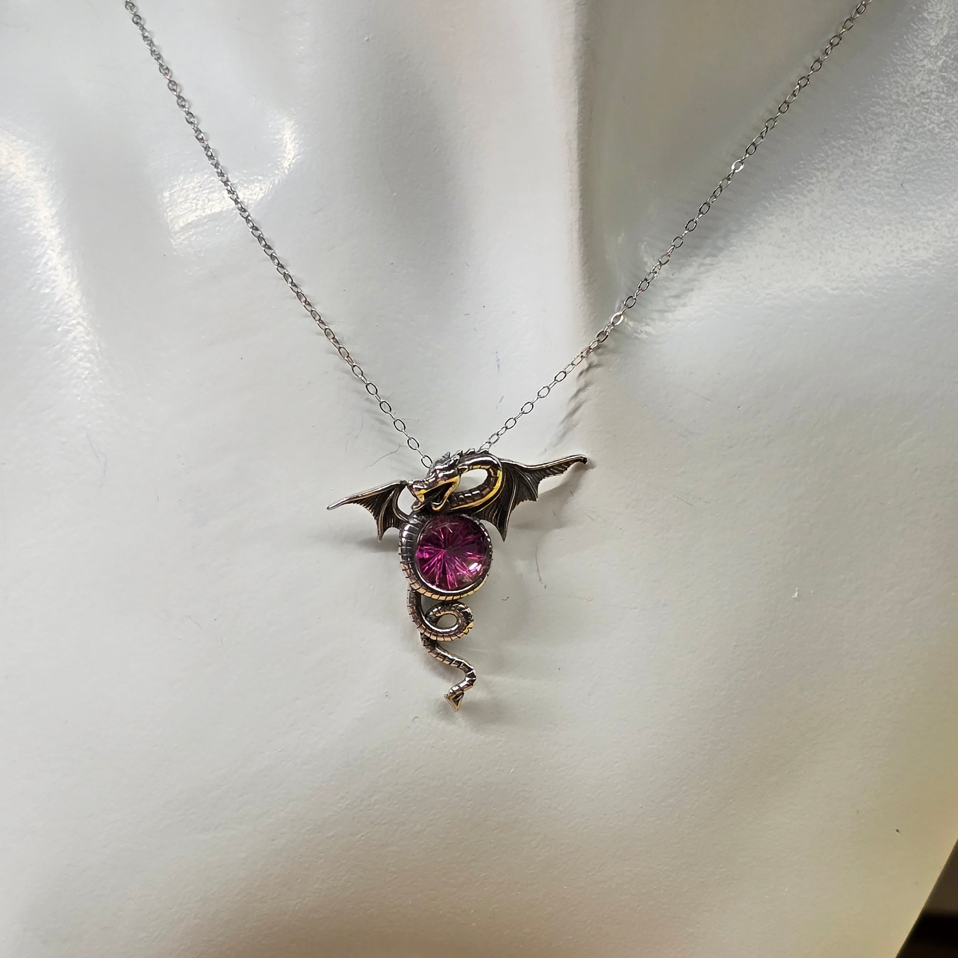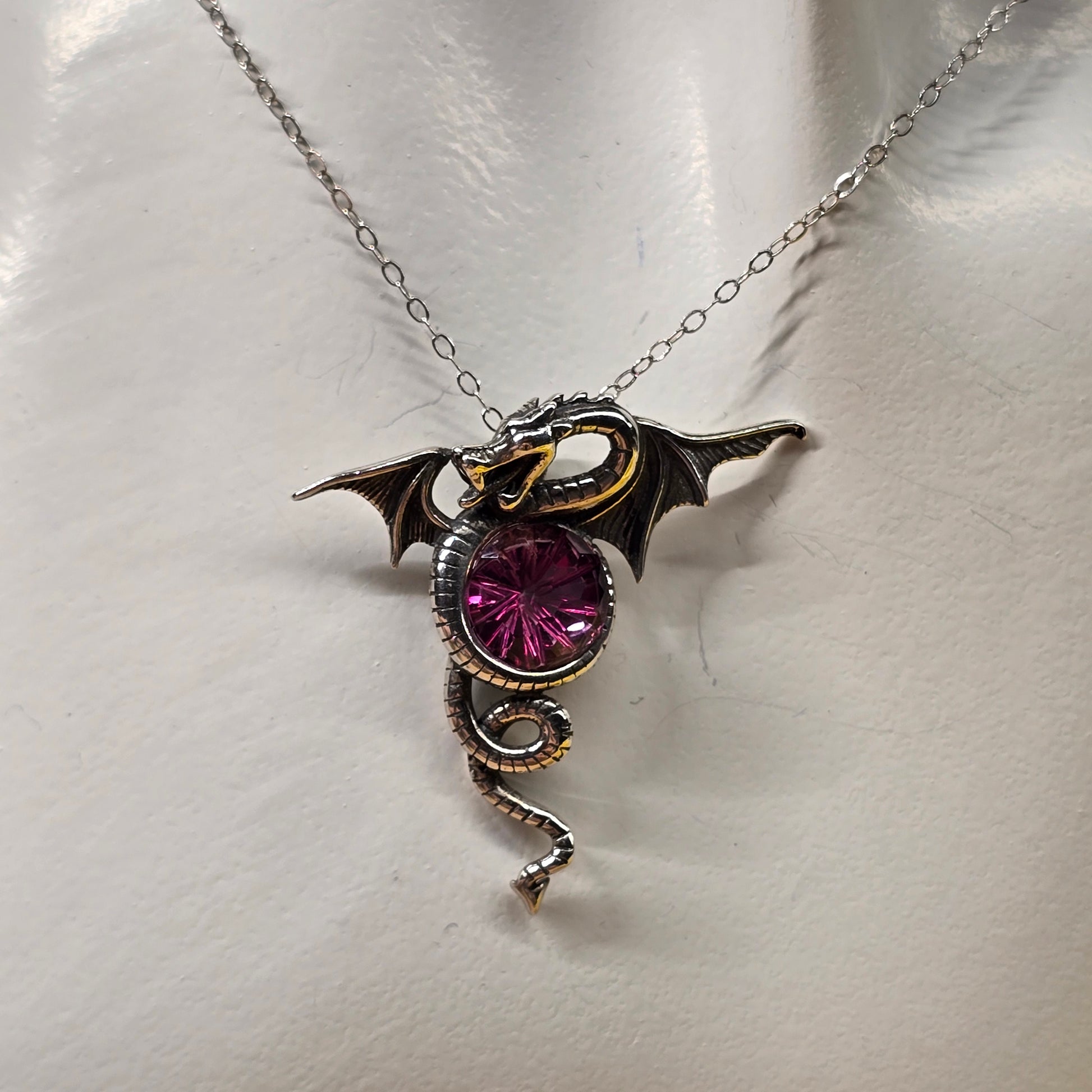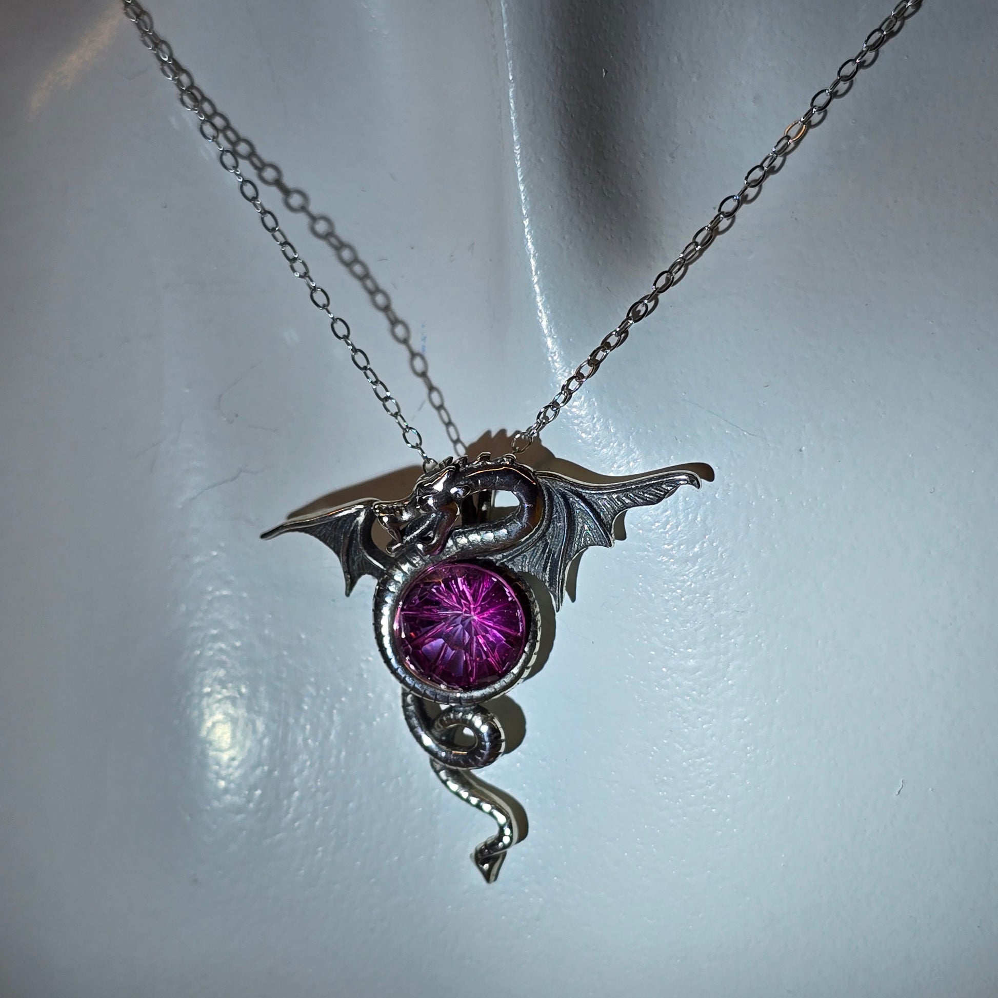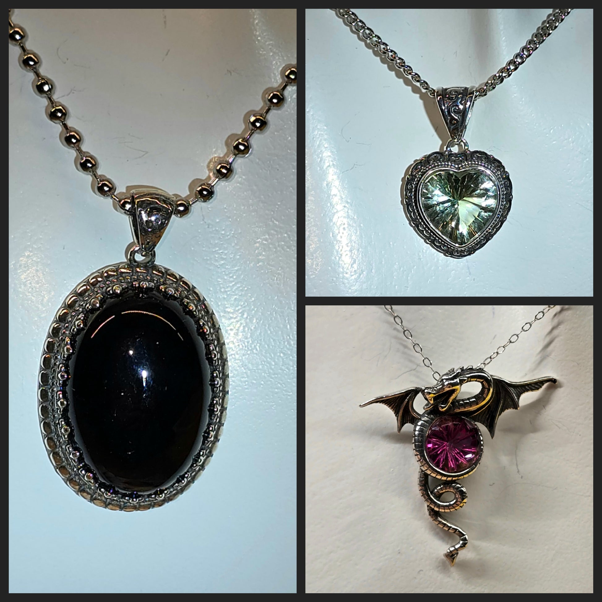 Black Onyx Pendant 40, Green Quartz Heart Pendant 36, Pink Topaz Dragon 36, Stainless Steel Ball Chain 10, Stainless Steel Curb Link 10, Sterling Silver Chain [Free Gift]