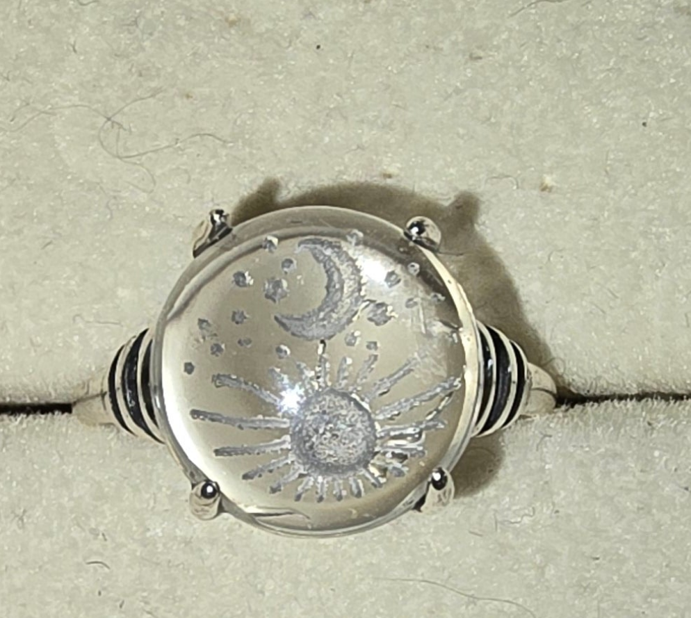 Clear Quartz Laser Moon Star Ring