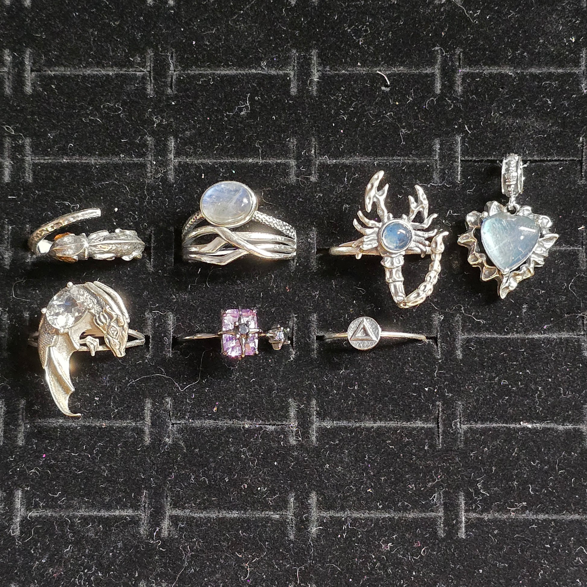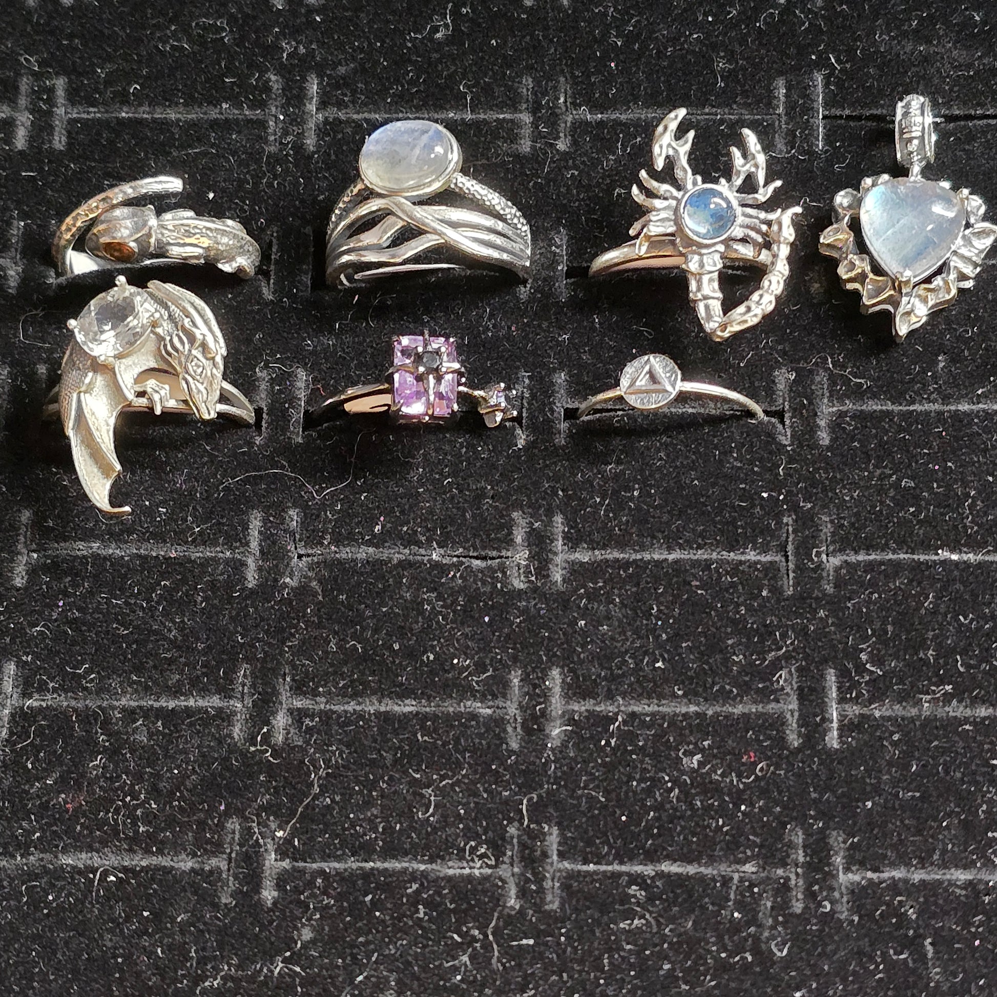 Chameleon 24, Lab Double Ring 20, Aqua Scorpion 22, Clear Quartz, Dragon 26, Amethyst 22, Fire/Water Gift, Lab Heart 30