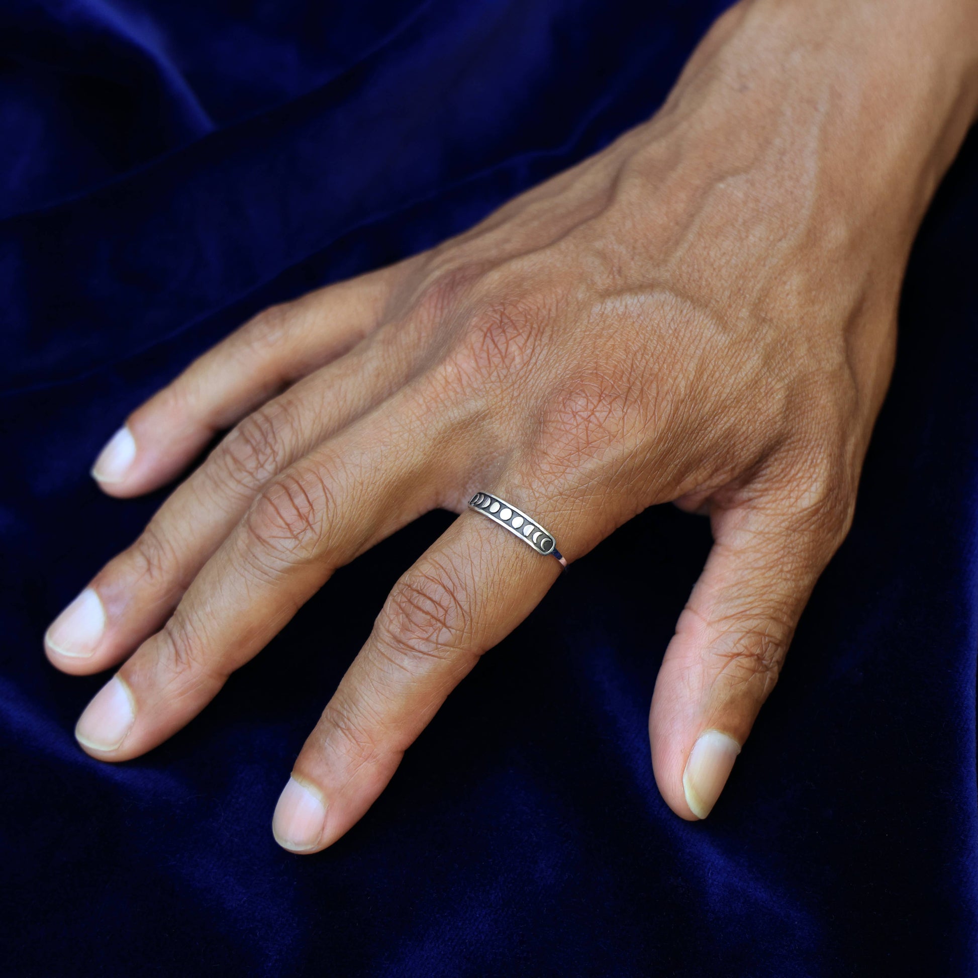 Moon Phases Ring. The beauty of the glowing moon can mesmerize us and stops us in our tracks. It offers us a moment to pause - and if It's a new moon, it signals a beginning, while the waning moon signals a time to clear negative influences from our lives. This simple, ready to wear ring offers you a way to keep the moon spirit always close by. Looks fabulous on its own or stacked with other rings. • Made from Recycled Silver.